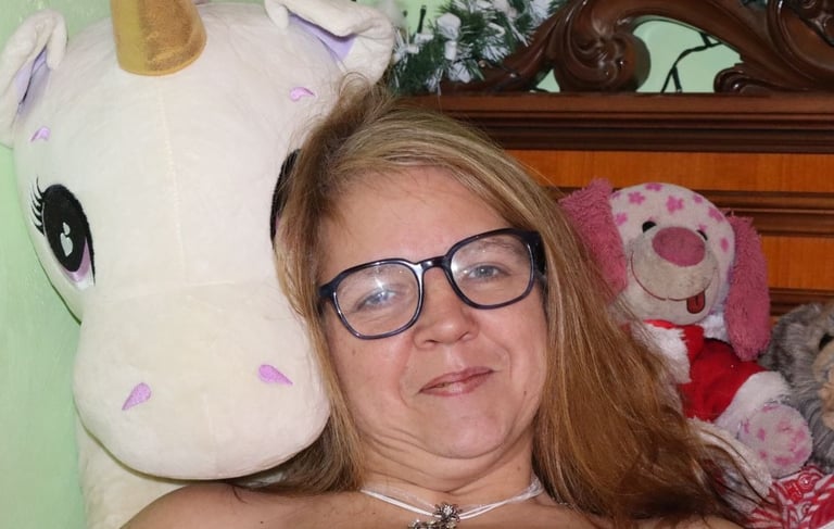 Ein Moment voller Gemütlichkeit und Charme – Debby mit einem Lächeln, das gute Laune versprüht, und ihrem kuscheligen Einhorn-Freund an der Seite. Man sieht direkt: Hier ist jemand, der das Leben liebt und kleine, verspielte Details zu schätzen weiß. Ein Bild, das ihre fröhliche und verspielte Seite perfekt einfängt!