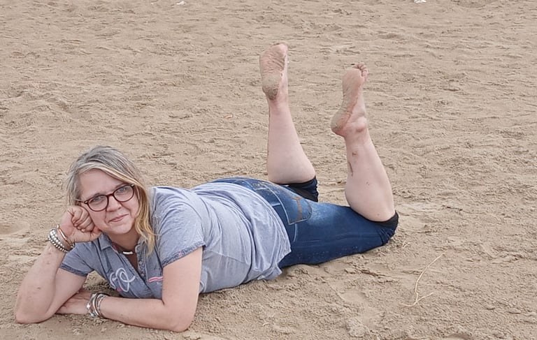 Strandmomente voller Gelassenheit und Lebensfreude – Debby relaxt im Sand und zeigt ihre entspannte Seite. Ein Bild, das den Sommerflair und die Liebe zu einfachen, schönen Augenblicken perfekt widerspiegelt. Barfuß im Sand, mit einem wissenden Lächeln – einfach authentisch und nahbar!